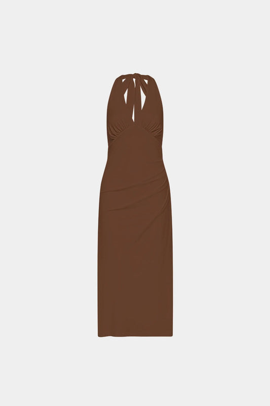 Norma Halter Dress in Chocolate Slice Stripe
