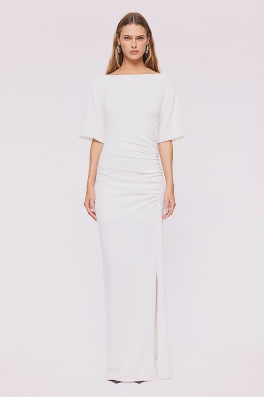 Violetta Ruched Maxi Dress - White